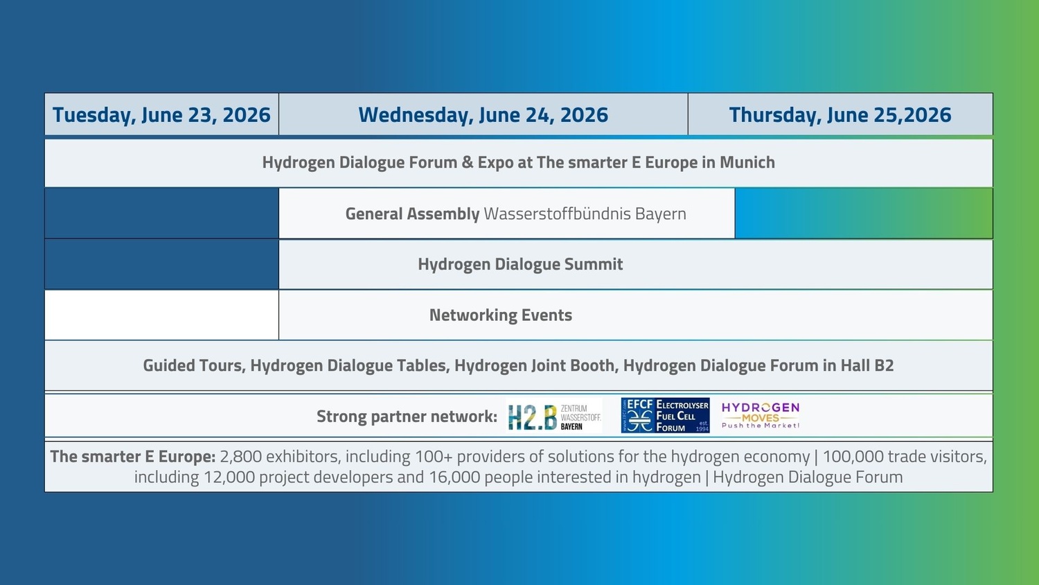 Join us in Munich and profit from the concentrated expertise of the exhibitors in our exhibition area HYDROGEN DIALOGUE Forum & Expo in hall B2!