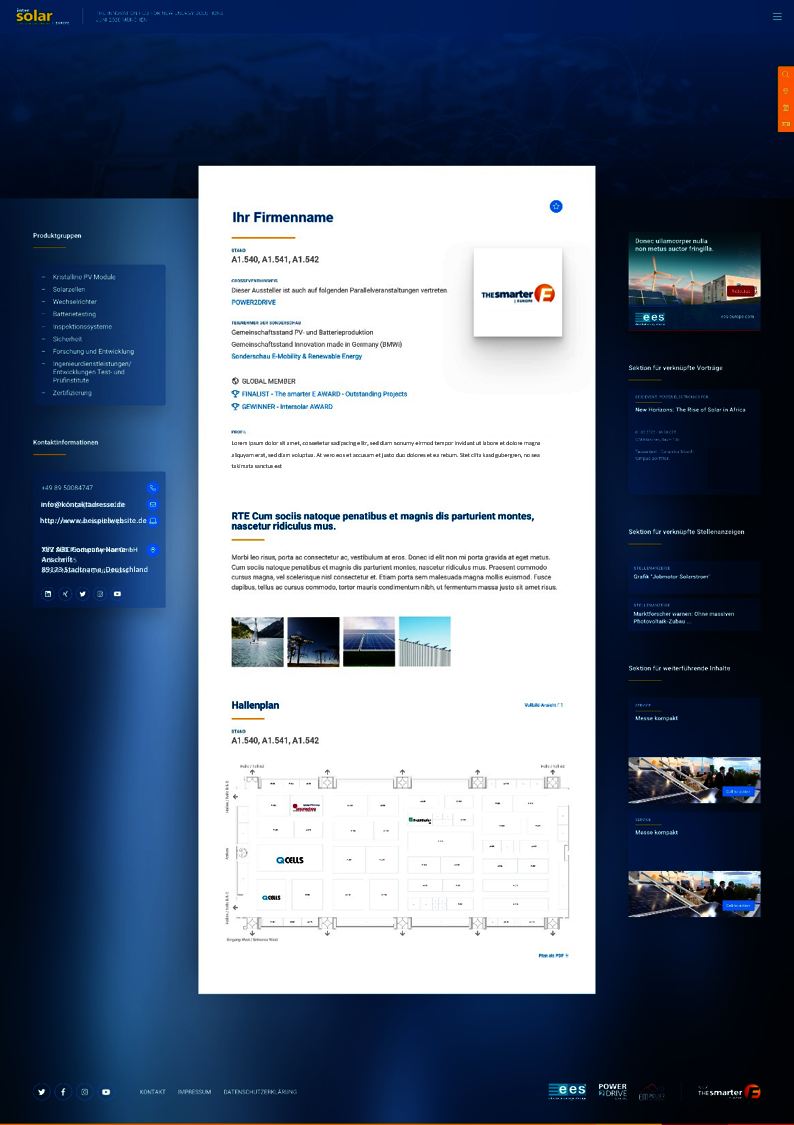 | Mehr Details | Intersolar Europe | ees Europe | Power2Drive Europe | EM-Power Europe |