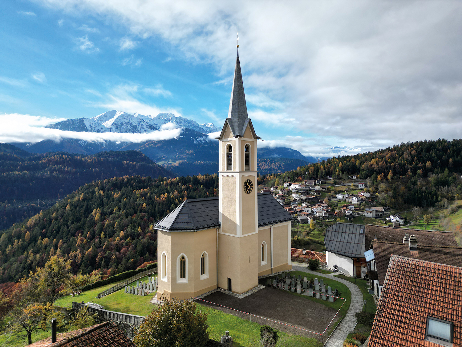 Die Anlage wurde mit maßgefertigten, satinierten Modulen umgesetzt, die Blendwirkungen vermeiden und als Indach-Lösung harmonisch in das geschützte Ortsbild integriert sind. Trotz anfänglichem Widerstand seitens Denkmalpflege und Gemeinde überzeugt das Projekt durch seine Vorbildfunktion: Es zeigt, dass der Klimaschutz selbst bei historisch wertvollen Bauwerken realisierbar ist, ohne die architektonische Substanz zu beeinträchtigen. Die Kirche Trin setzt so ein starkes Zeichen für die Energiewende und den verantwortungsvollen Umgang mit der Schöpfung.