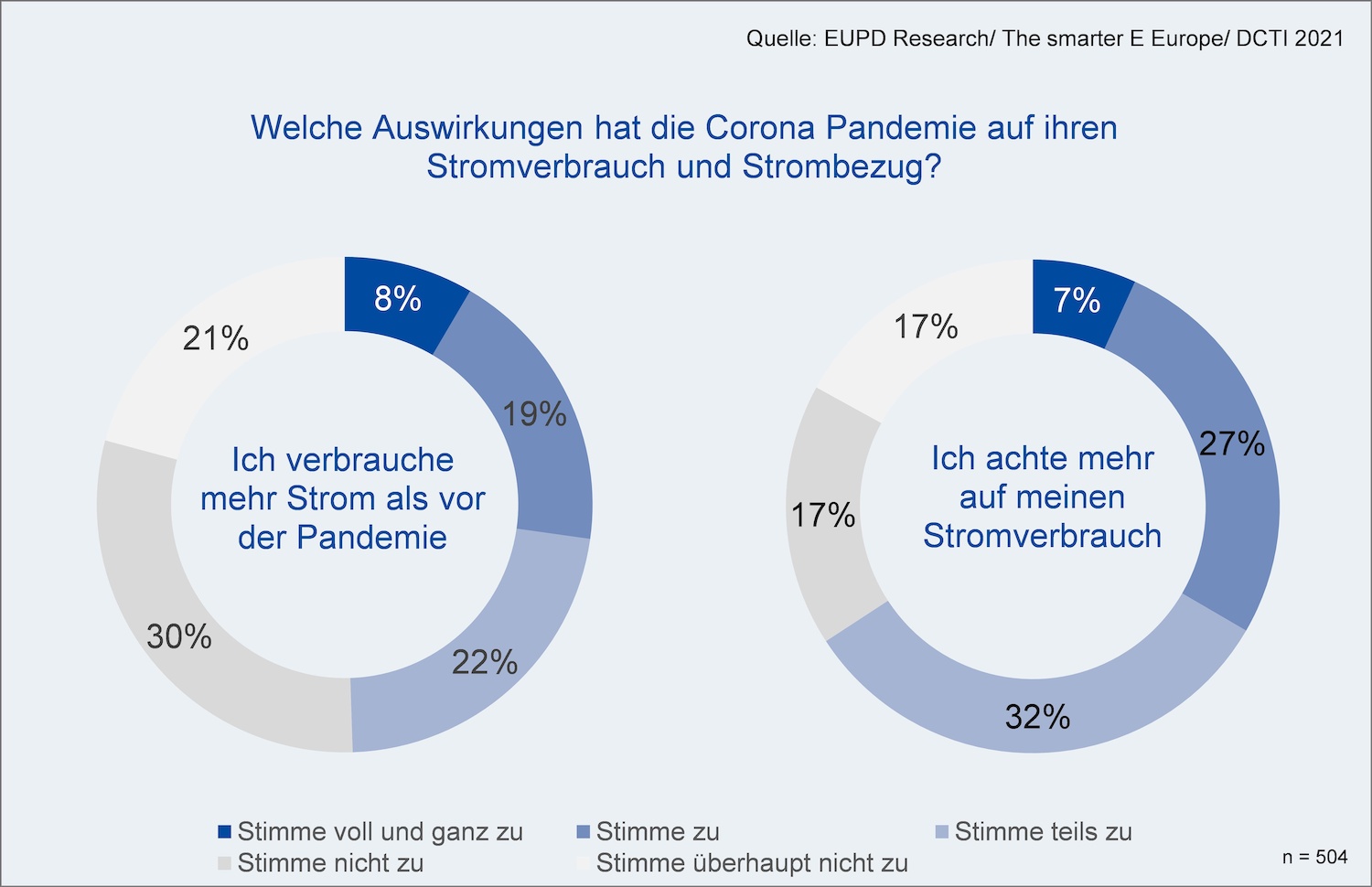 Homeoffice und reduzierte Kontakte außerhalb der eigenen 4 Wände haben bei gut der Hälfte von 500 durch EUPD Research befragten Haushalten zu einer Erhöhung des Stromverbrauches geführt. Gleichzeitig sehen 69 Prozent der Befragten klare Energieeinsparpotentiale im eigenen Haushalt. Hochgerechnet auf alle deutschen Haushalte ergeben sich damit im Strombereich Einsparungen von 12 TWh. Die Untersuchung ist Teil des diesjährigen Energiewende Awards, der an herausragende Energieversorger der DACH-Region vergeben wird.