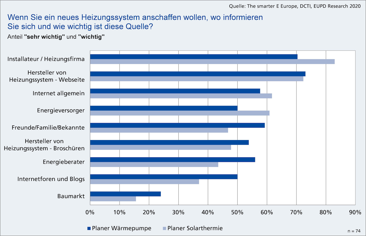 Die Wärmewende ist integraler Bestandteil der Energiewende. EUPD Research zeigt in einer Befragung von Hausbesitzern, welchen Stellenwert Energieversorger bei der Informationsbeschaffung bei Planern von Wärmepumpen und Solarthermie-Anlagen besitzen. Herausragende Energieversorger werden im Rahmen des Energiewende Awards als Vorbilder der Branche prämiert.