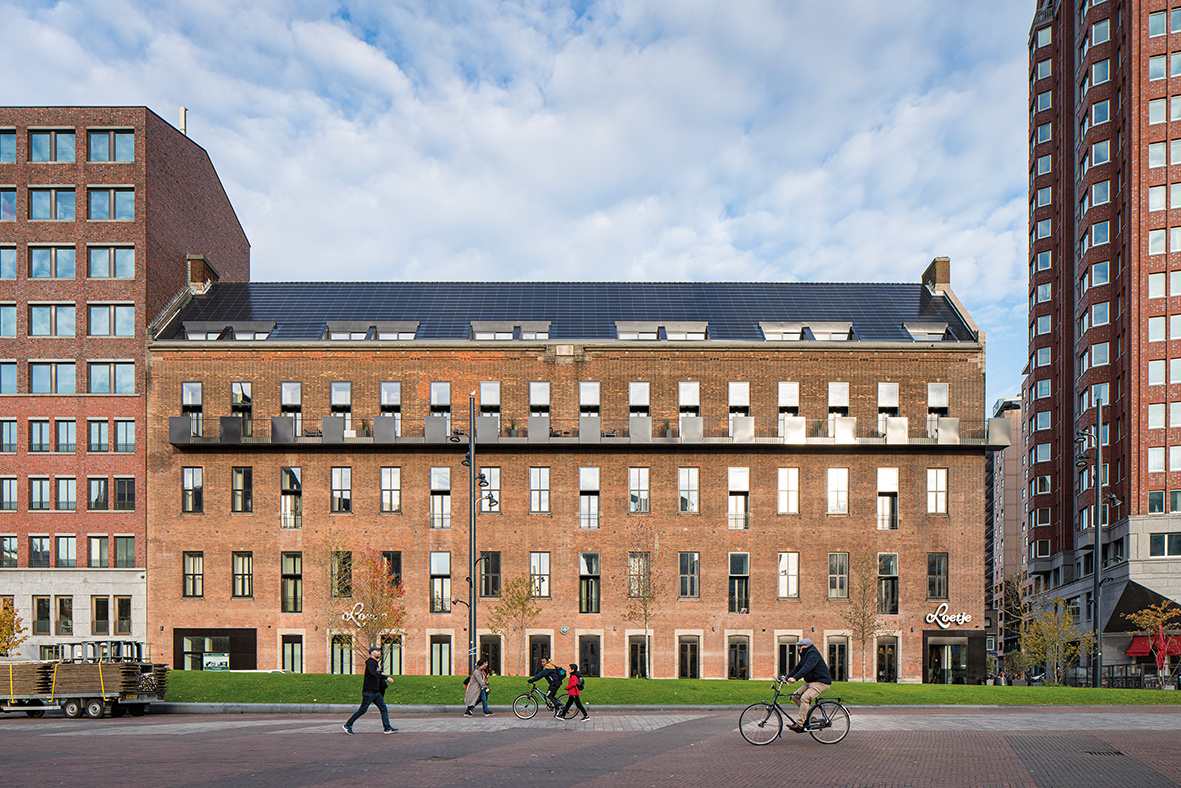 The former administration building for the Dutch telecommunications company PTT, which dates from 1951, consists of a mighty four-storey concrete-framed building with a brickwork façade. Orange Architects revitalised the building by converting it into studio apartments with a restaurant on the ground floor.