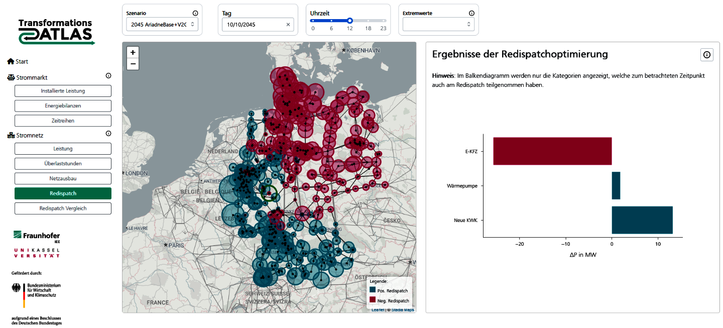 The transformation atlas, which was created as part of the project, provides a detailed insight into the changes in the German energy system. This atlas, which has a high spatial and temporal resolution, makes it possible to visualise the effects of electromobility and renewable energies on the electricity grid.