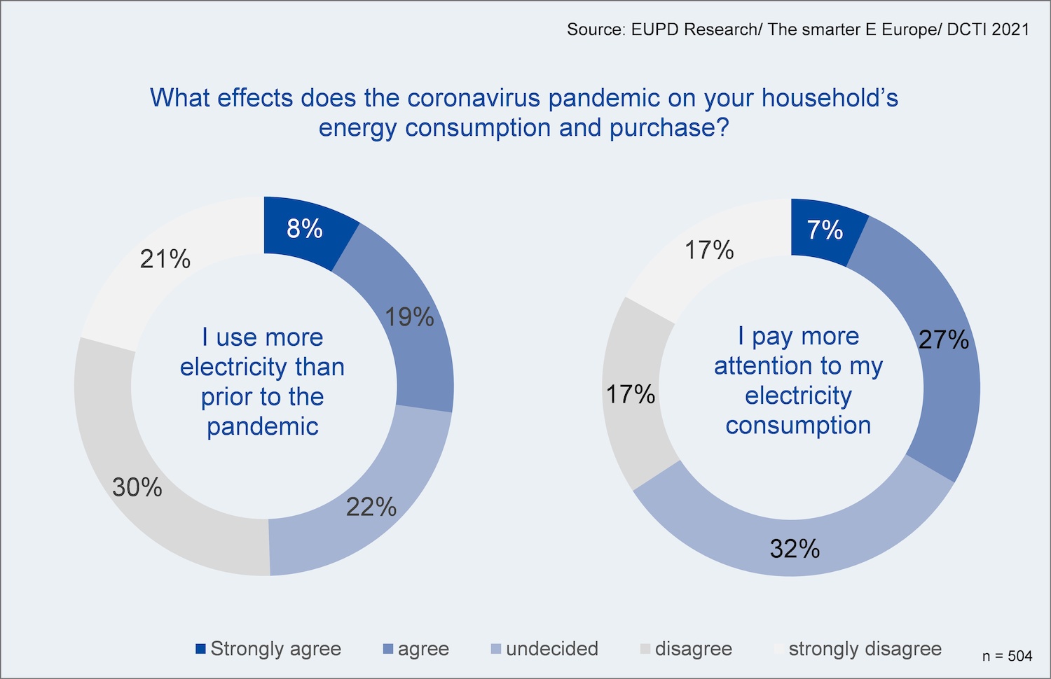 Bonn. The coronavirus pandemic has changed many things in life. For millions of people, for example, the daily working routines have been moved from offices to home offices. A recent EUPD Research study conducted among 500 private households shows that the additional time spent at home caused an increase of households’ energy consumption. Regarding the use of electricity and electricity consumption, about half of the survey participants state that they are currently using more electricity than prior to the pandemic. With about two-thirds the share of responding private households is even significantly higher.