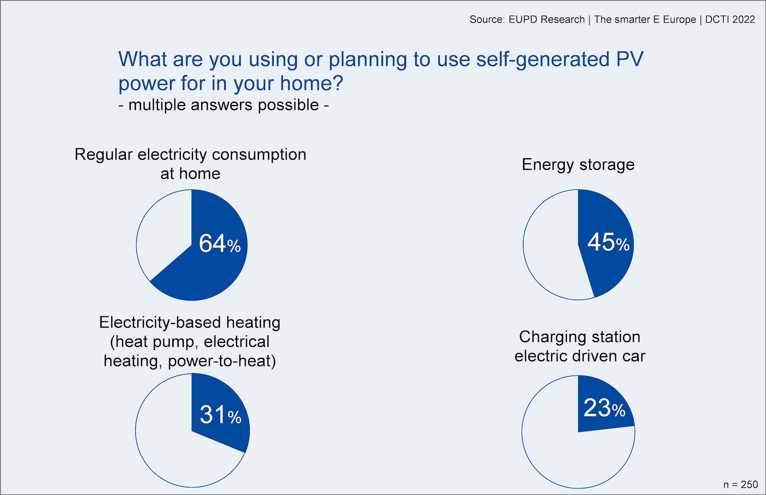 "In the context of strongly increasing energy prices, self-consumption based on clean and cheap solar power right off one's roof is becoming increasingly important for home owners. The investment in a PV system stimulates the purchase of electric cars", comments Dr. Martin Ammon, Managing Partner at EUPD Research.