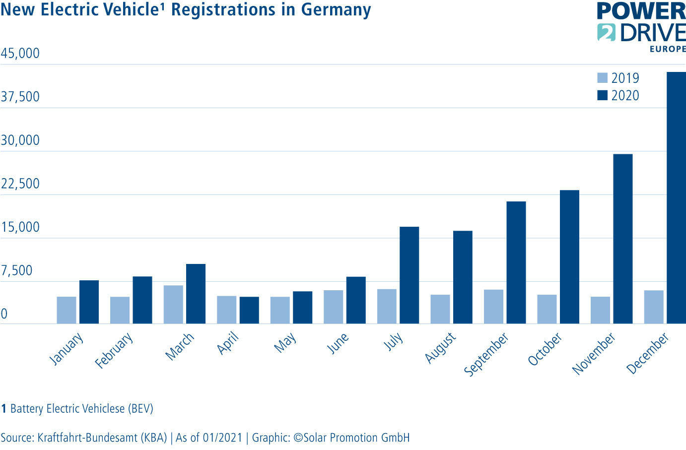 The story of battery electric vehicles in Europe since the beginning of 2020 is unprecedented: what started with an economic downturn during the first Covid 19 wave is becoming a success story. In particular, the combination of new attractive and affordable vehicle models, increased range, a steadily developing charging infrastructure, and government support such as in Germany led to the upturn of electromobility in Europe.