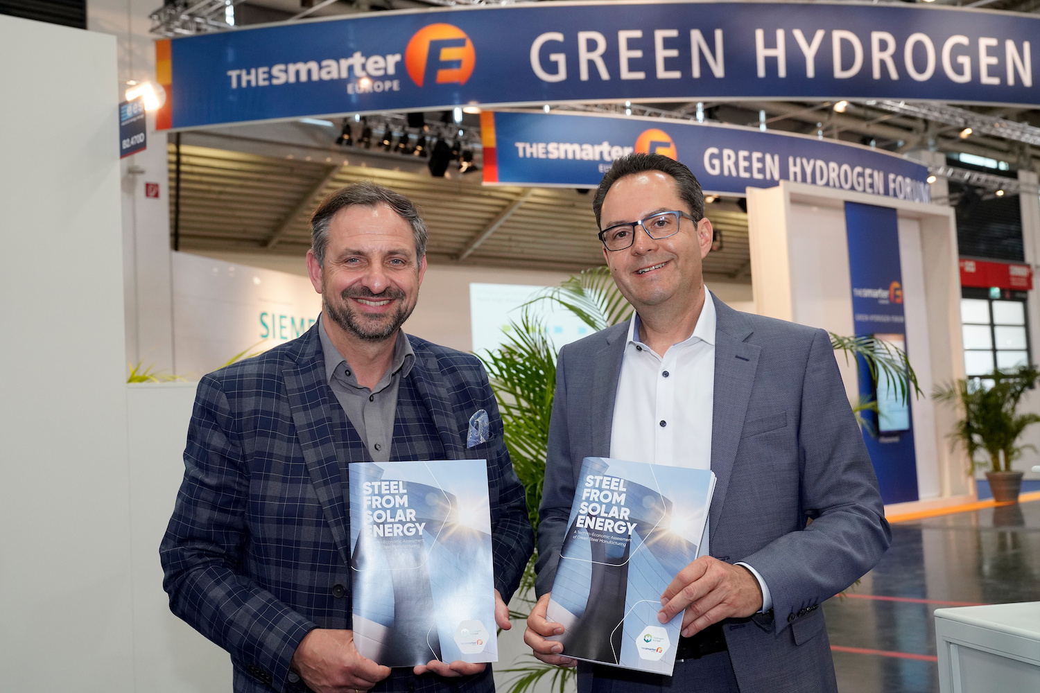 Munich/Pforzheim, May 11, 2022: Political developments in recent months have demonstrated the need for a secure and independent energy supply for Europe. The success of the energy transition is linked to the accelerated introduction of a green hydrogen economy, in addition to the increased expansion of renewable energies. For the second year in a row, green hydrogen is one of the focus topics at Europe’s largest energy industry platform, The smarter E Europe. Today - on the first of three days of the exhibition - a study on solar steel production was presented: Jorgo Chatzimarkakis, CEO of Hydrogen Europe, announced the launch of the Steel from Solar Energy study, with the support of The smarter E Europe. The aim of the study is to show the conditions under which steel can be produced economically from iron ore using hydrogen from renewable energy sources. The study is available for free download.