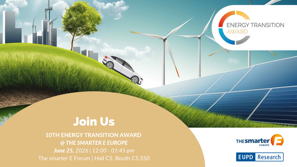 On June 25, 2026, the 10th Energiewende Award ceremony will take place at The smarter E Forum, Hall C5, Booth C5.550 at The smarter E Europe in Munich, Europe’s largest alliance of exhibitions for the energy industry. It aims to recognise energy providers that go beyond compliance by offering forward‑looking services that empower consumers and support the broader energy transition. In addition to a detailed analysis of multiple criteria across relevant future domains in the DACH region, the award highlights utilities from Denmark, France, Italy, the Netherlands, Norway, Spain, and the United Kingdom, reflecting a broader commitment to cross-European innovation and sustainability