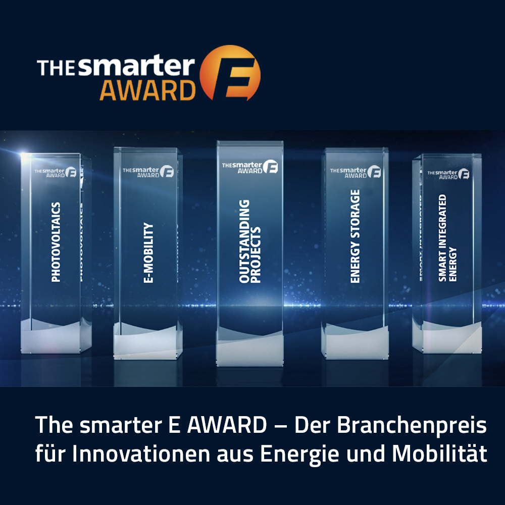 - E-Mobility: Der Mobilitätssektor ist ein Schlüsselbereich für das Gelingen der Energiewende. Die Preise in der Kategorie „E-Mobility“ werden für Innovationen und Prokete ausgelobt, die die Mobilitätswende voranbringen, insbesondere in den Bereichen Ladeinfrastruktur, intelligente Ladelösungen, E-Fahrzeuge, Mobility Services oder Antriebsbatterien.